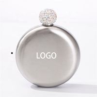 مخصص 5 أوقية مستديرة قارورة الورك شخصية الفولاذ المقاوم للصدأ اليدوية حجر الراين غطاء صغير المحمولة هدية الأعمال لوصيفات الشرف