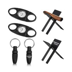 Özel Logo siyah masa üstü plastik puro aksesuarları için özel Logo çift bıçak puro kesici