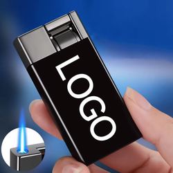 Lüks tasarım özelleştirilebilir Logo taşınabilir çakmak puro rüzgar geçirmez mavi alev hediye için rüzgar geçirmez-hediyeler için